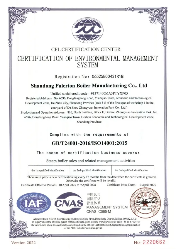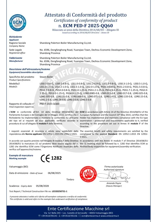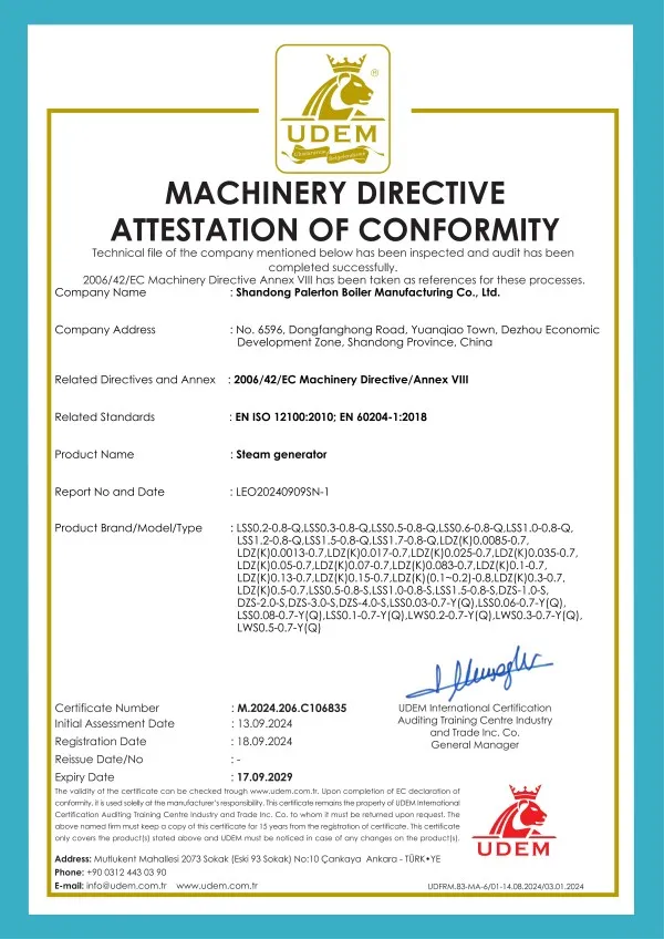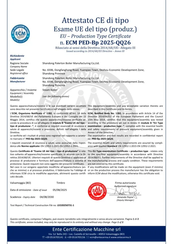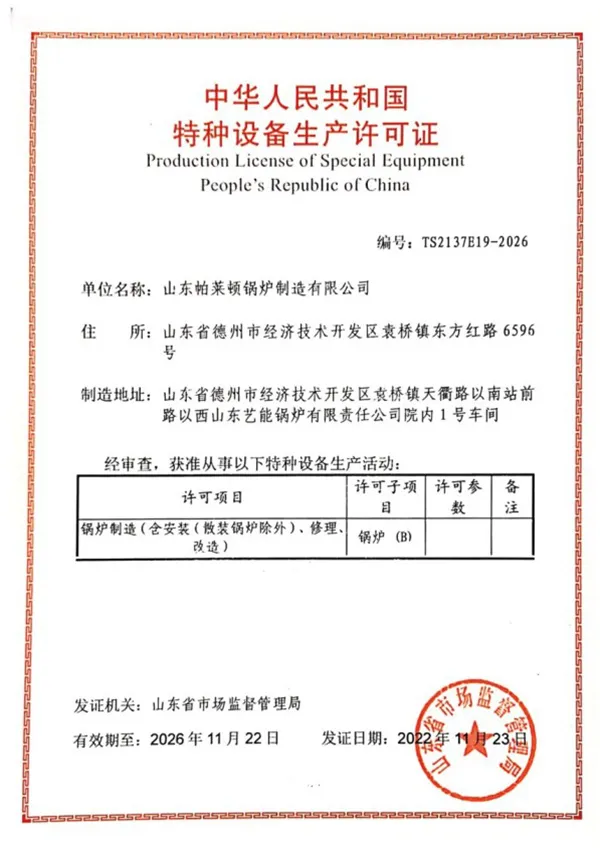 PALERTON придерживается пути технического прогресса и лидерства в продукции. В области высокотехнологичных парогенераторов, не требующих регистрации, самостоятельно разработанный «Парогенератор с микроперегревом в композитной камере» использует полностью предварительно смешанную водяную охлаждаемую горелку, объединяющую «высокоэффективную технологию прямоточного теплообмена», «технологию разделения пара и воды в проточном режиме» и «технологию перегрева пара с электростанций», достигая каскадного теплообмена водяного тракта, многоступенчатой циркуляции и выхода «микроперегретого» пара. Одновременно он оснащен самостоятельно разработанной PALERTON энергосберегающей системой управления «PLD-iPower 2.0». Общая тепловая эффективность устройства превышает 101,21%, сухость пара достигает 100%, содержание NOx менее 20 мг/м³, температура дымовых газов на выходе менее 50°С, расход газа на тонну пара менее 75 нм³/ч. Устройство не требует регистрации и согласования для использования, экономия энергии по сравнению с традиционными котлами составляет 10-40%.