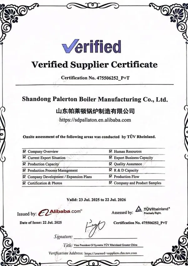 PALERTON издавна стремится предоставлять предприятиям высококачественную продукцию и услуги. Мы придерживаемся видения «лидера в индустрии парогенераторов», следуя основным ценностям «честность, простота, инновации, взаимовыгодное сотрудничество», создавая экологичные, эффективные и энергосберегающие методы производства, позволяя тысячам предприятий наслаждаться более качественным обслуживанием в области тепловой энергии пара.